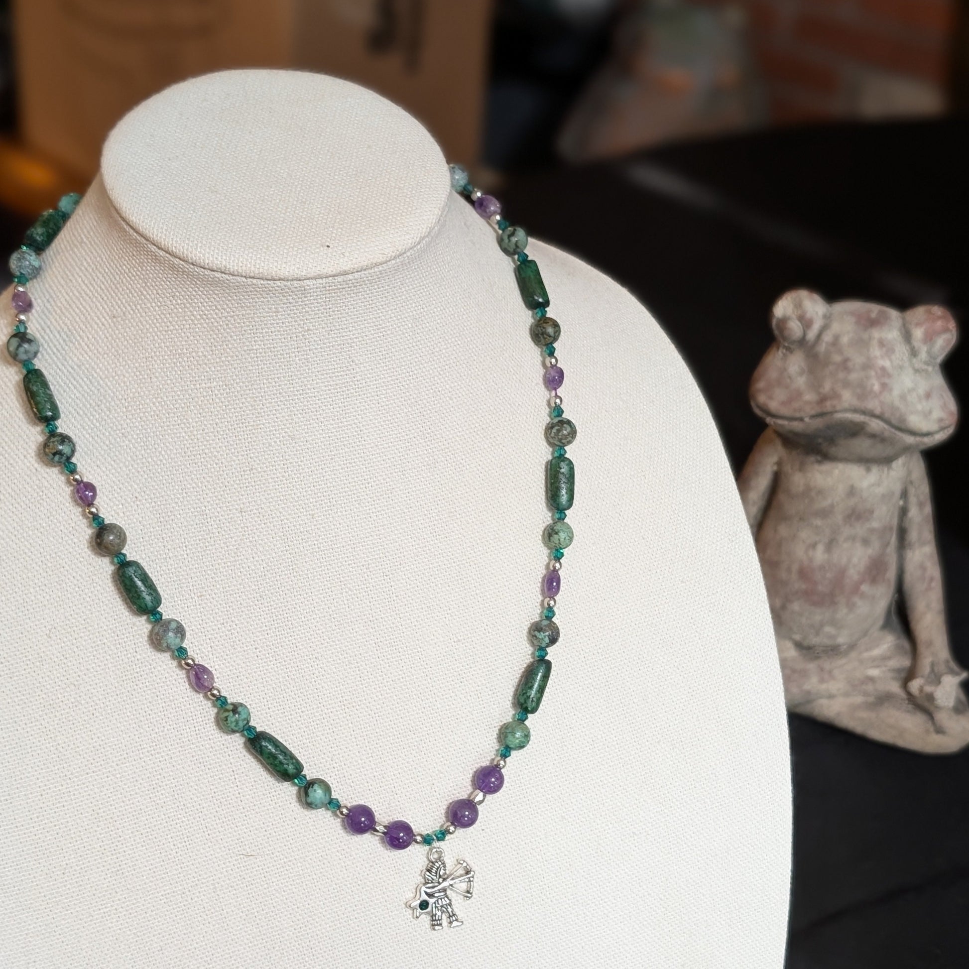✨Aetherbow✨| Sagittarius Zodiac Necklace with Turquoise, Amethyst & Wood
