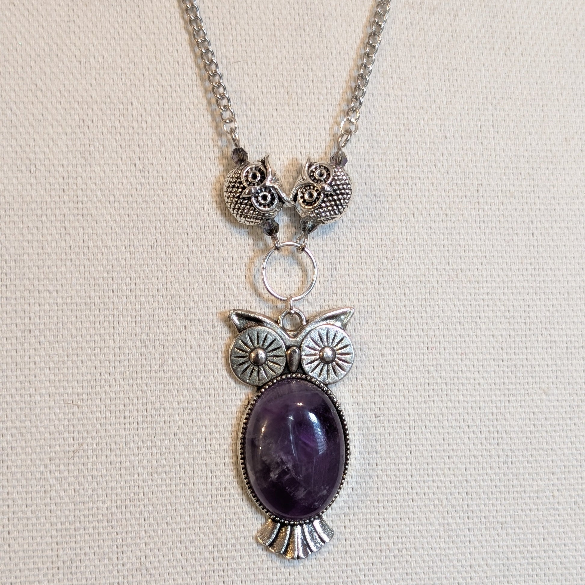 ✨Amethowl✨| Amethyst Owl Pendant Necklace with Owl Bead Accents