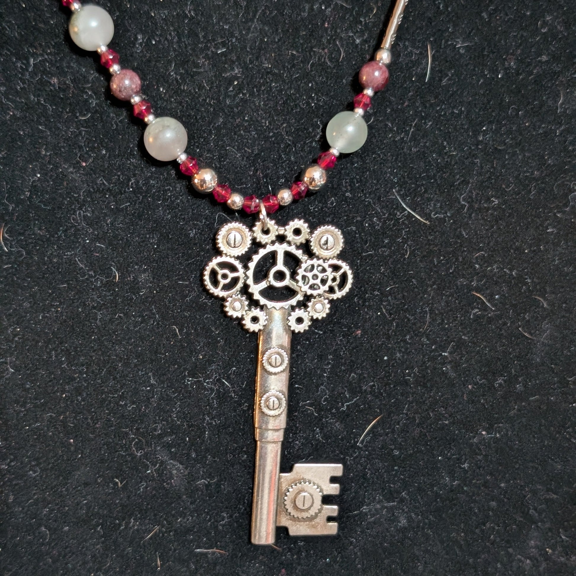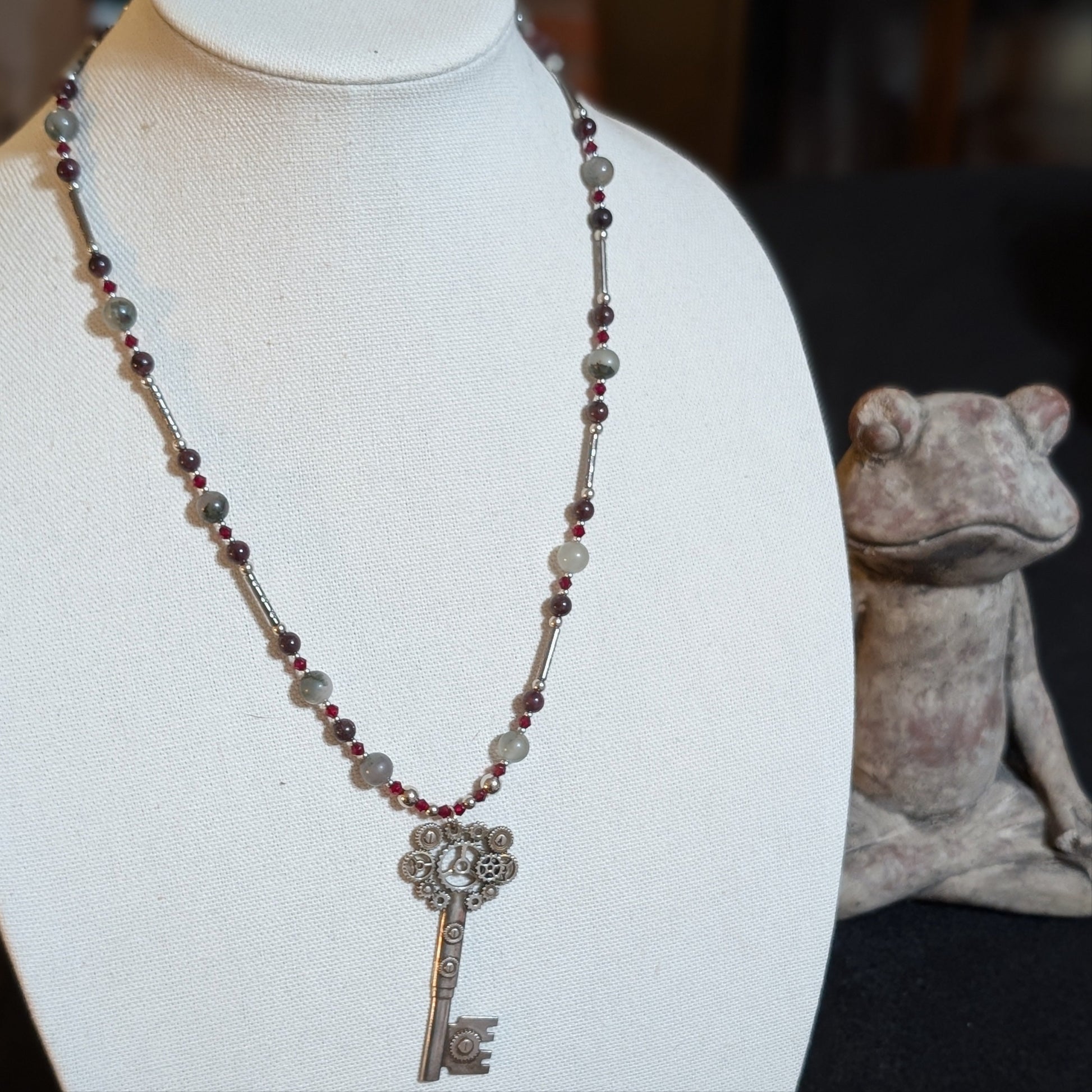 ✨Cogheart✨| Garnet & Bloodstone Steampunk Key Necklace