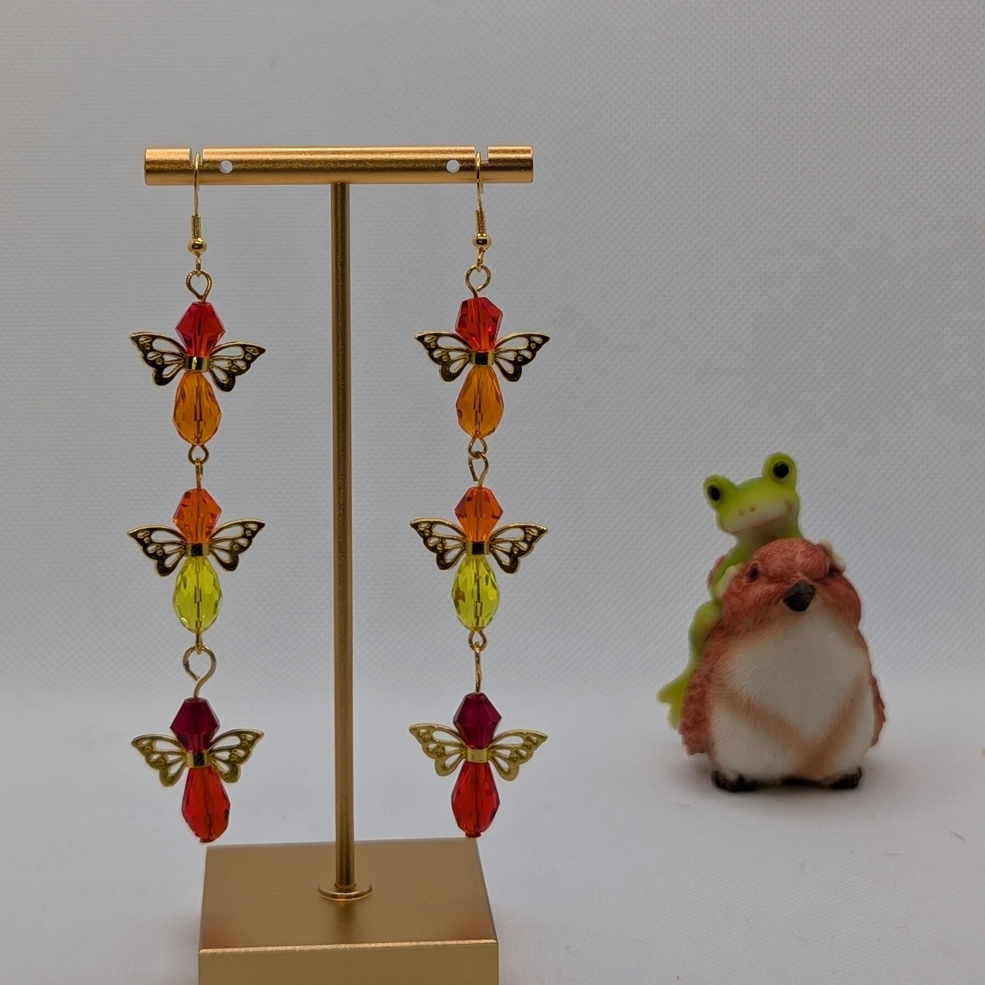 Firadiance is a flicker caught mid-flight: golden wings outstretched, glimmering beads trailing like sparks. These fiery fae shimmer with warm-toned crystals and gold-toned hardware that glows like the last glints of a campfire. With their bold glint and glowing personality, they’re the kind of earrings that catch eyes even from across the embers.