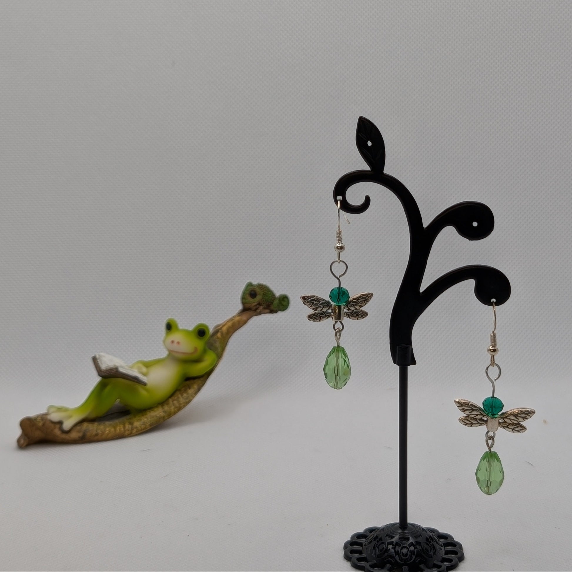 ✨Gigglegrass✨| Green Fairy Earrings with Silver-Toned Wings