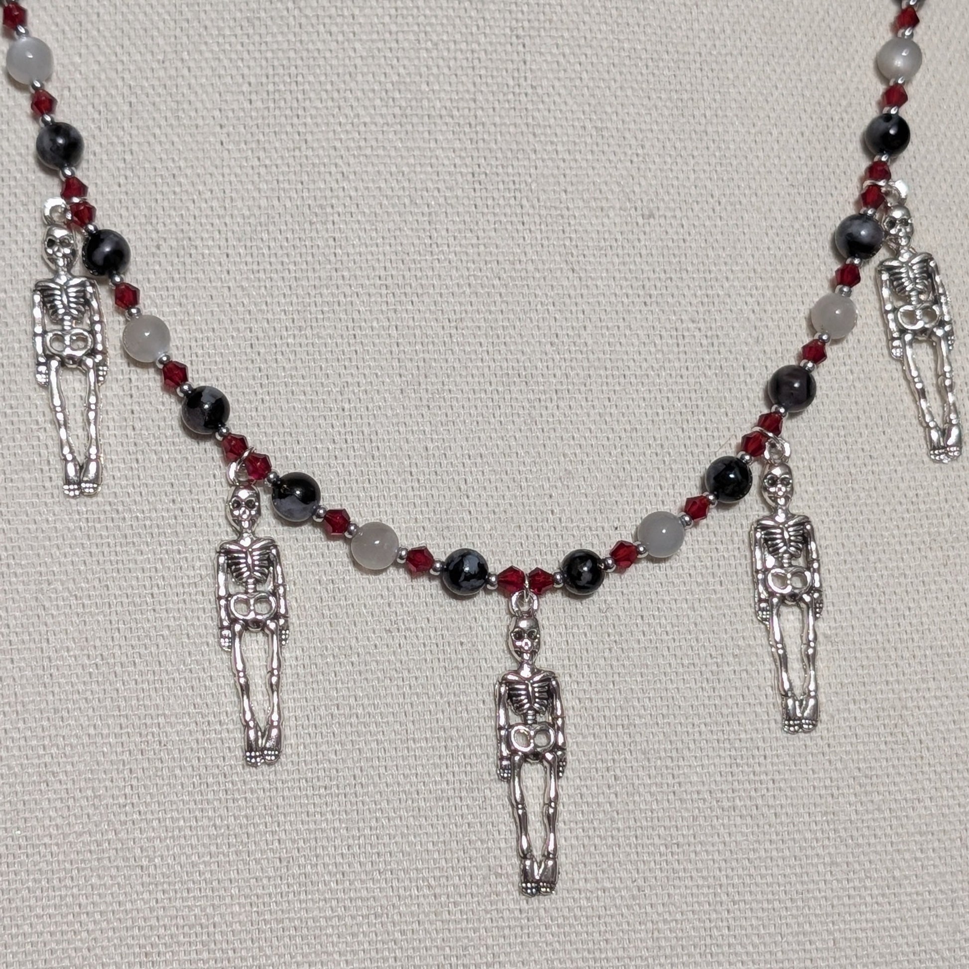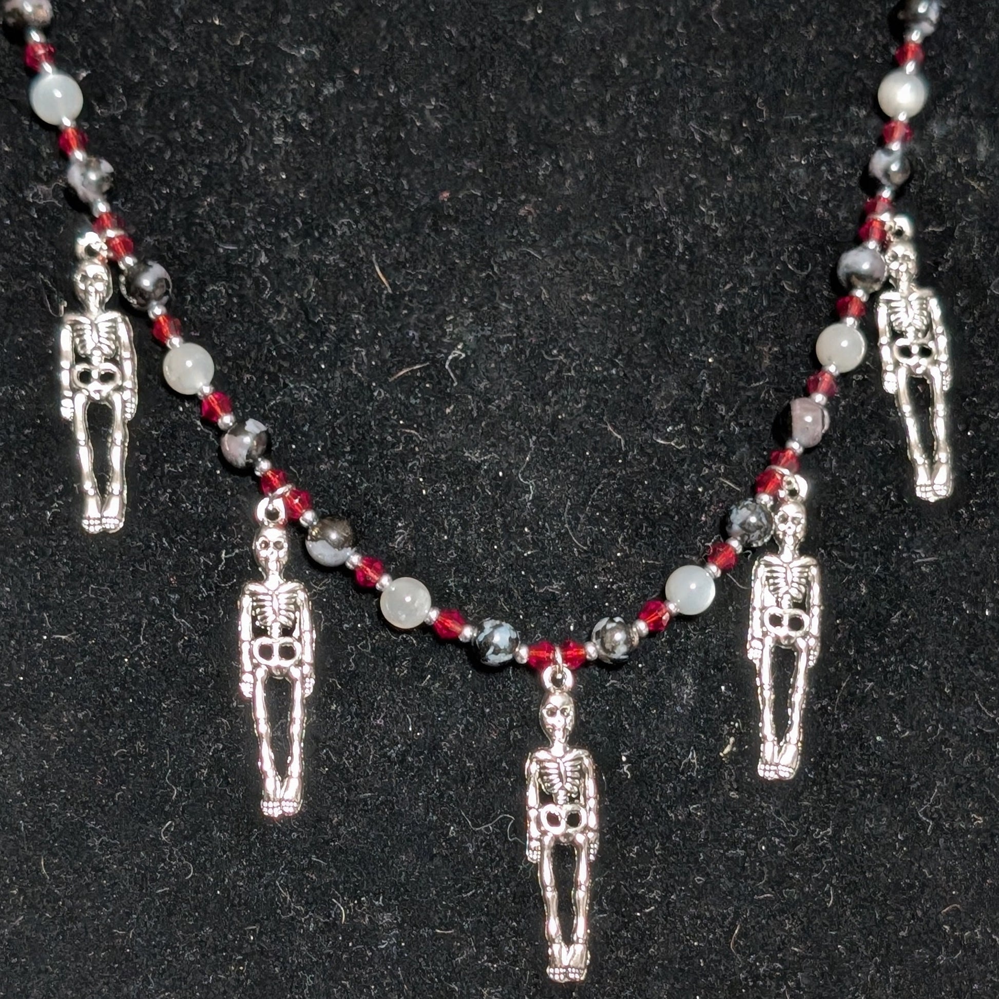 ✨Grave Waltz✨| Skeleton Necklace with Indigo Gabbro (Merlinite) and Silver Gray Moonstone