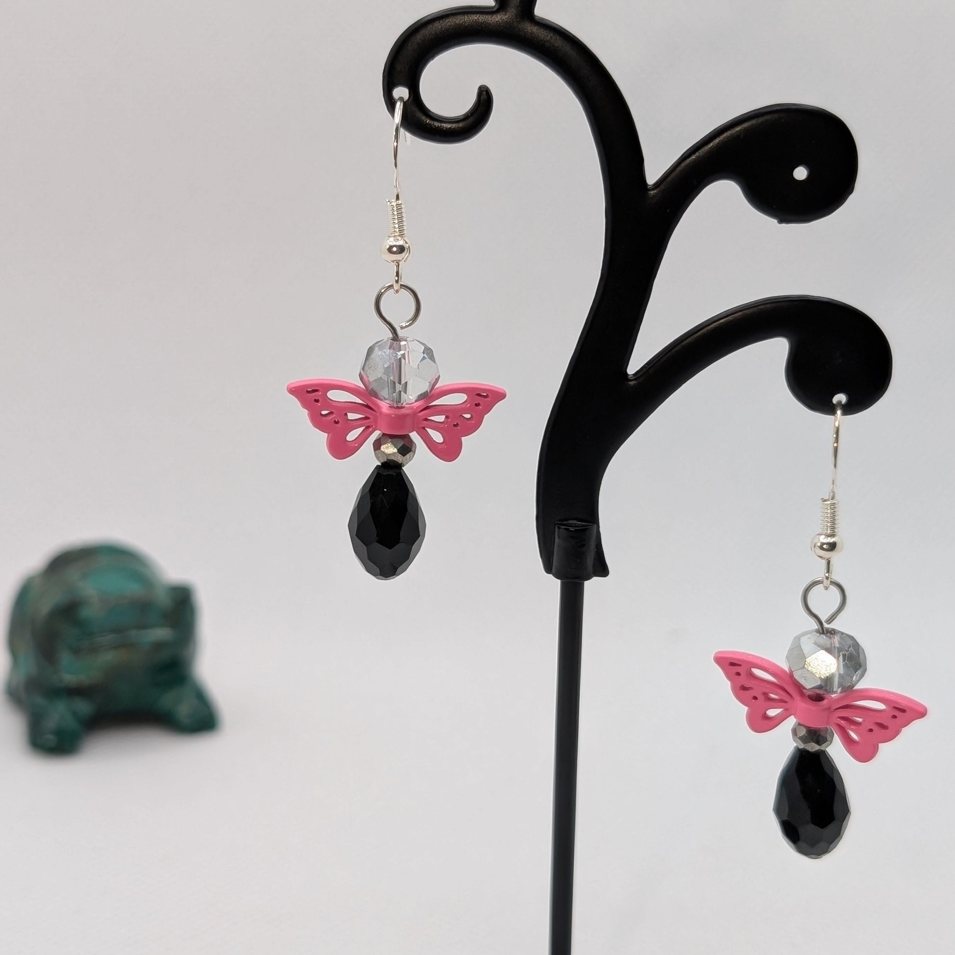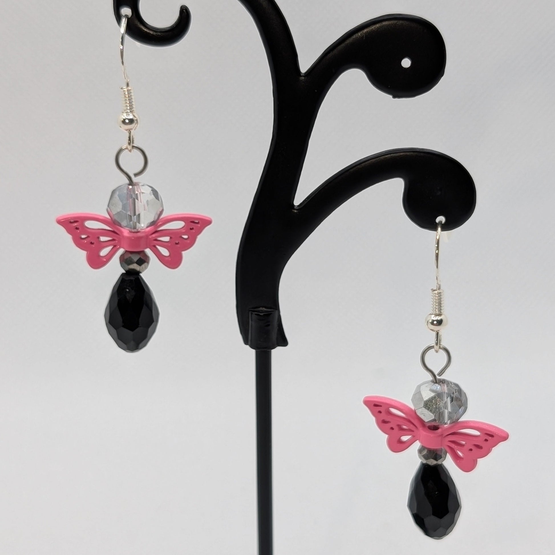 Crafted from faceted glass crystal beads with intricate openwork metal wings, these earrings are lightweight but luminous — designed to catch light from every angle. Jewel tones, neon brights, metallic flashes, and high-contrast pairings make this collection impossible to ignore when displayed together and irresistible when worn alone.