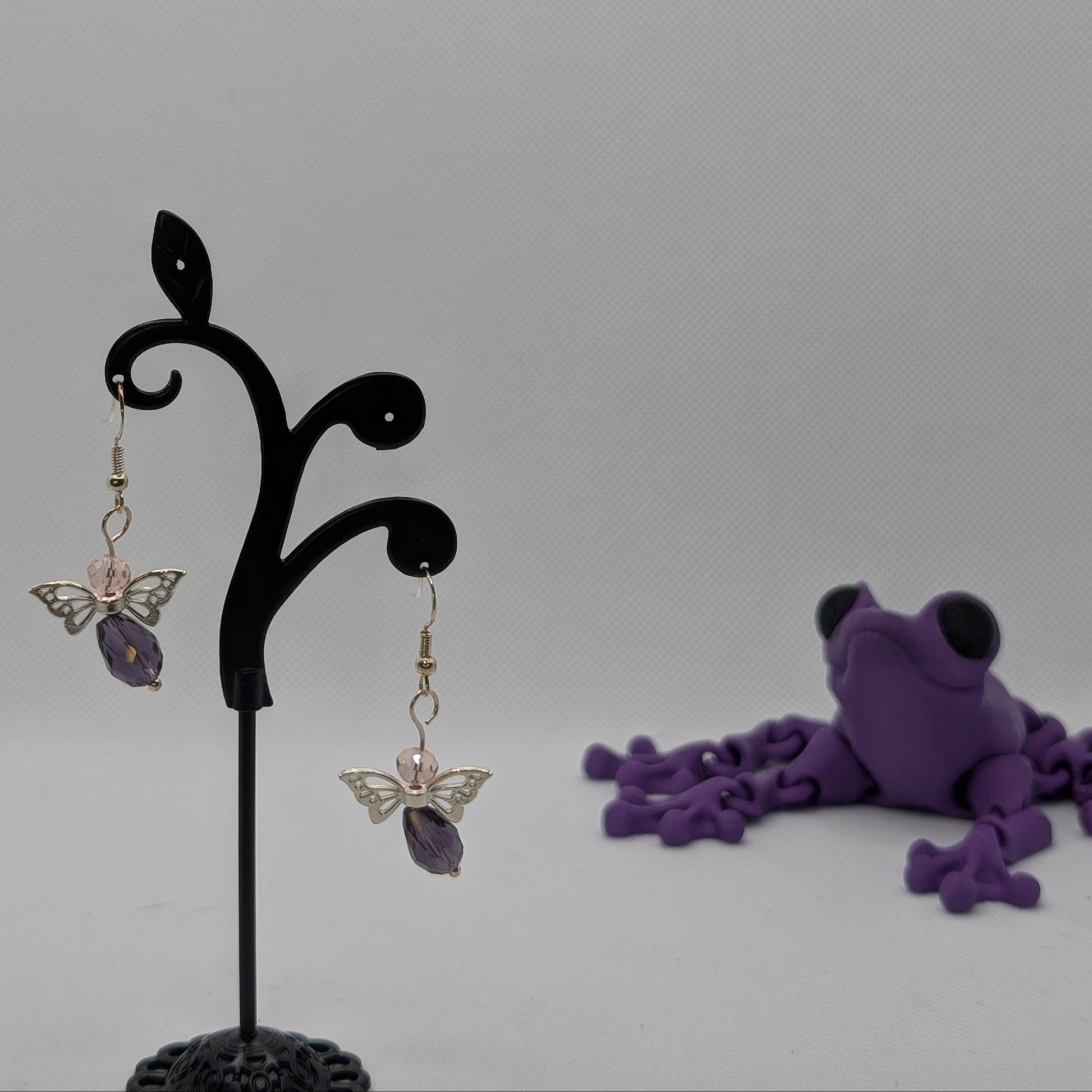 ✨Lulaplum✨| Pink & Plum Fairy Earrings with Silver-Toned Wings
