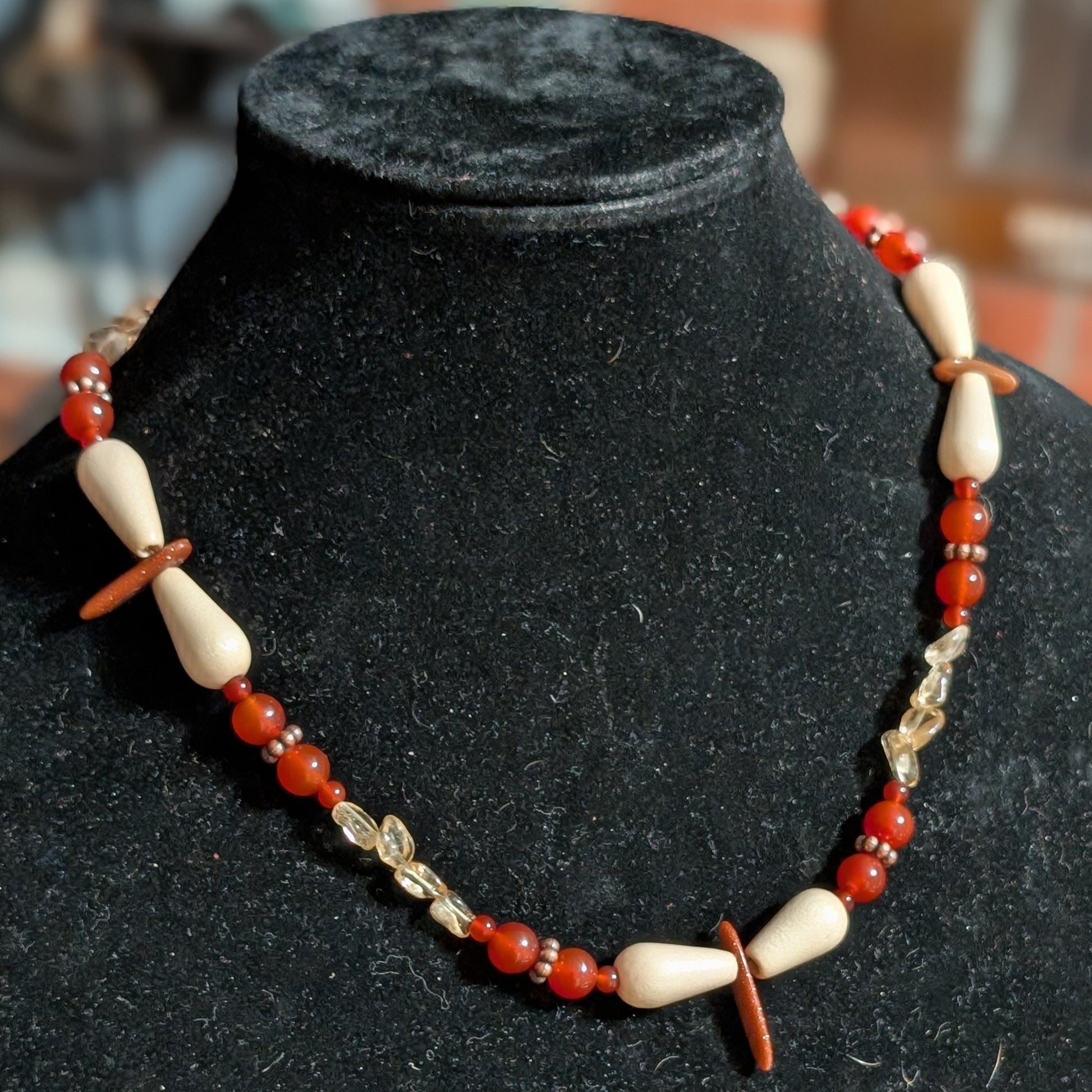 ✨Moltenflit✨| Carnelian, Citrine & Goldstone Necklace with Wooden Wing Accents