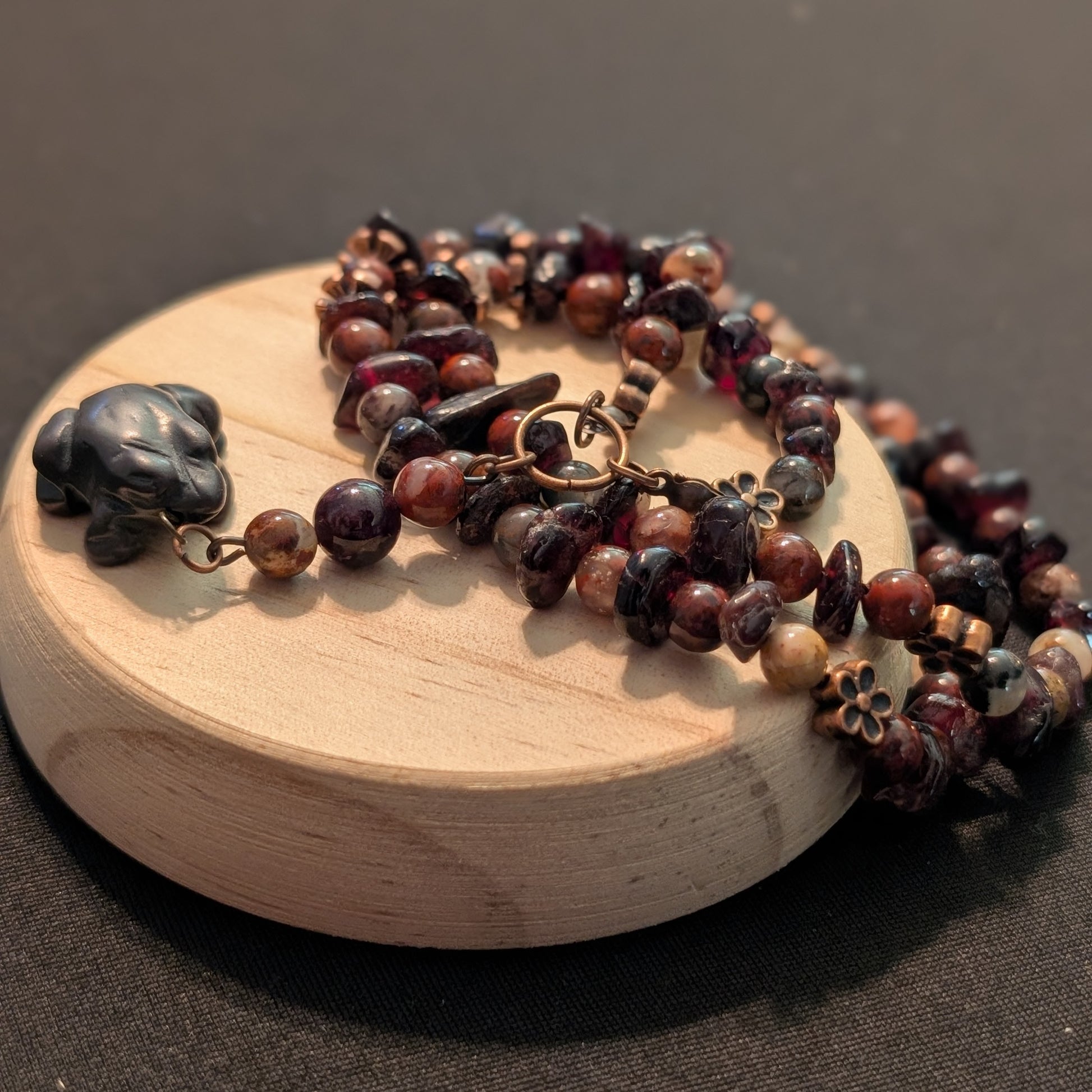 ✨Poppy✨| Poppy Jasper & Garnet Necklace with Hematite Frog Pendant