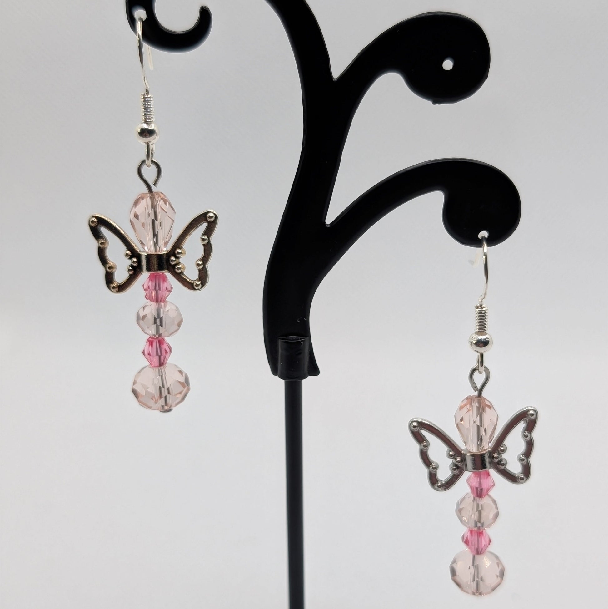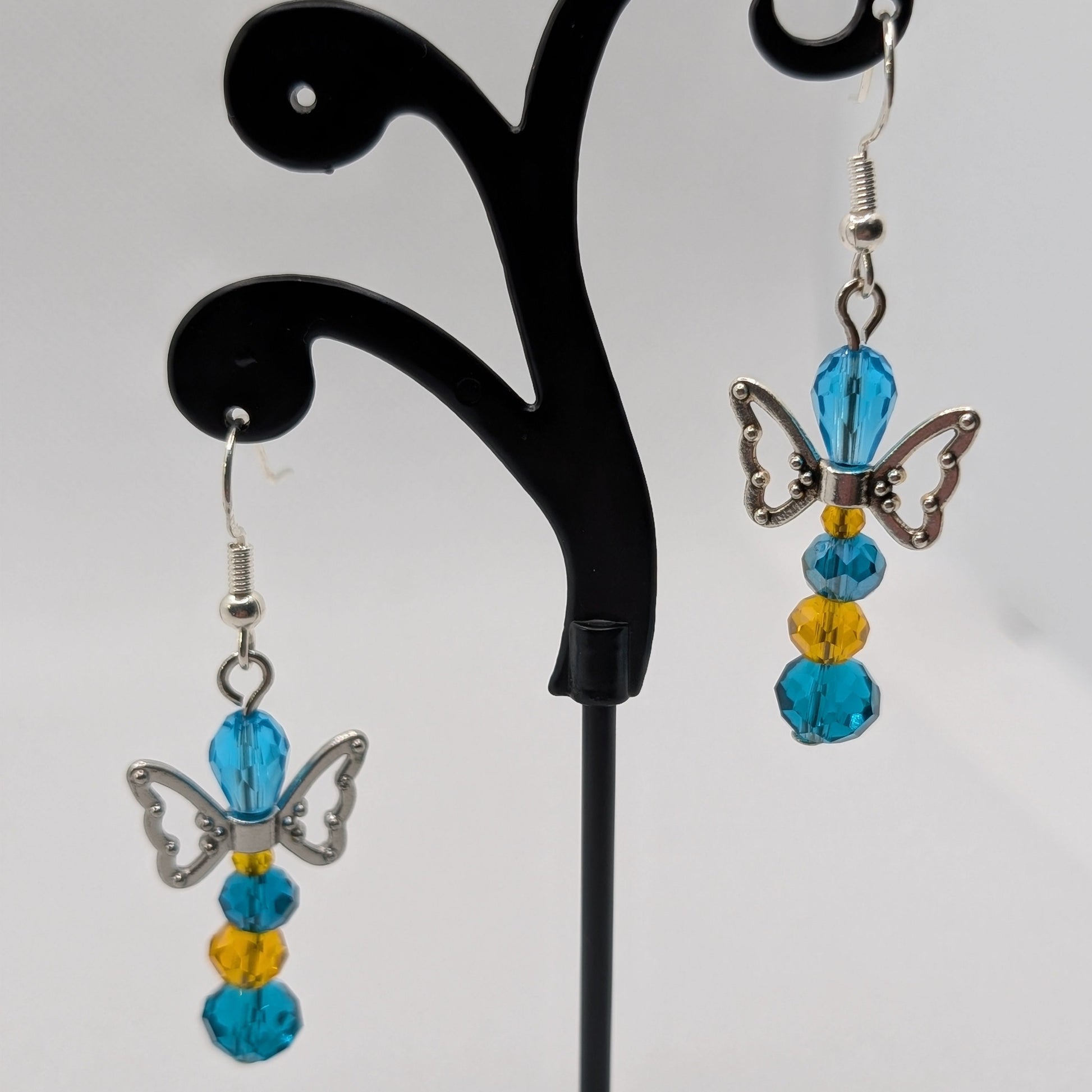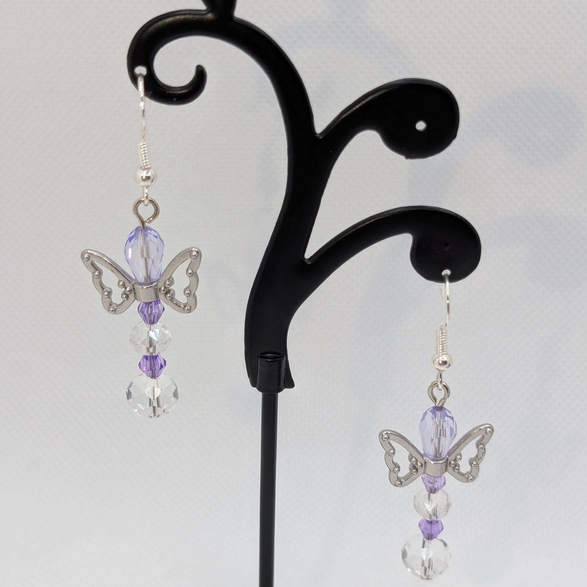 These taller fairies carry more presence than their smaller kin. Each design features layered glass beads in curated color combinations, suspended beneath silver-tone butterfly outline wings. The vertical silhouette elongates the look, making them ideal for anyone who prefers earrings that feel intentional without being overwhelming.