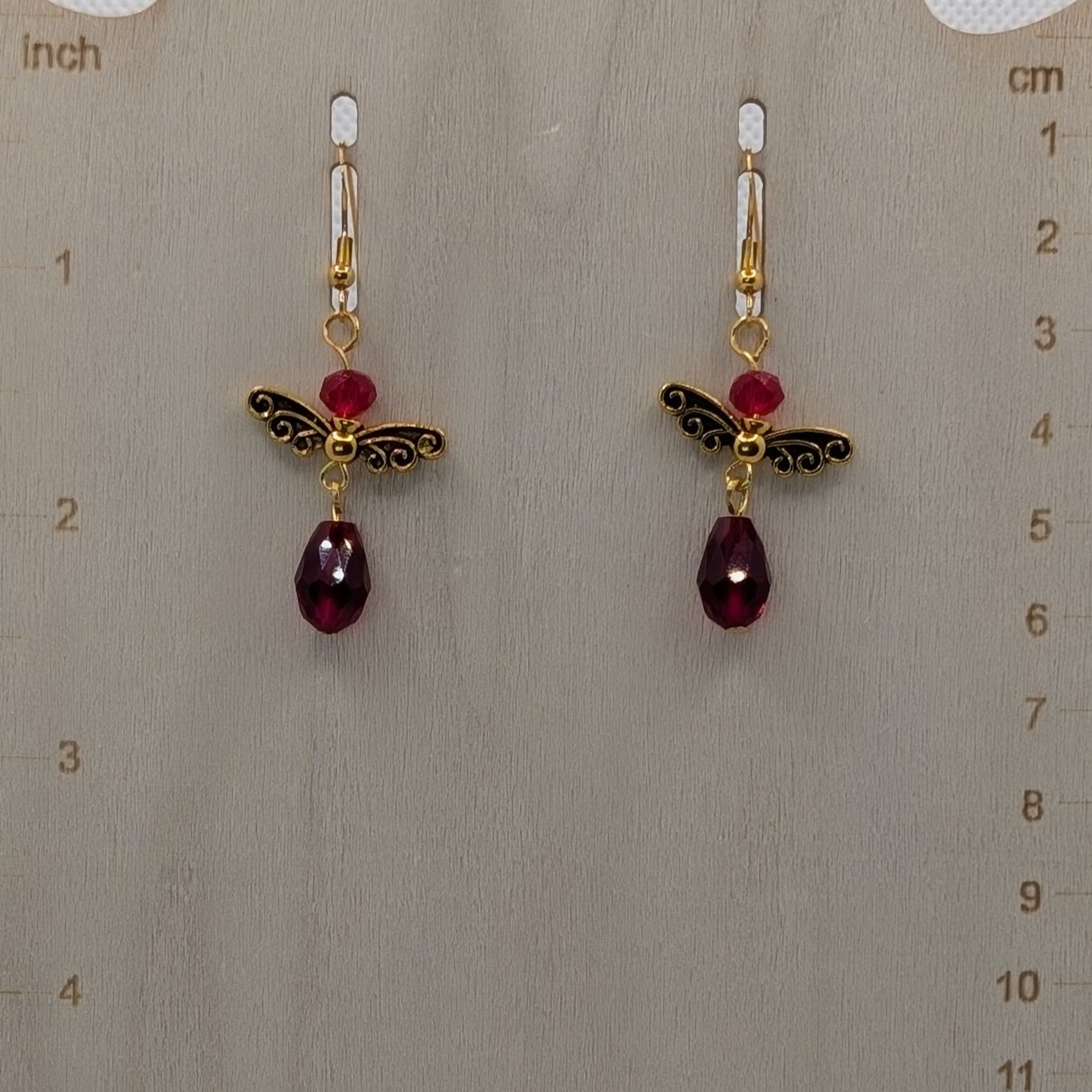 ✨Velverra✨| Ruby Red Fairy Earrings with Antique Gold Wings