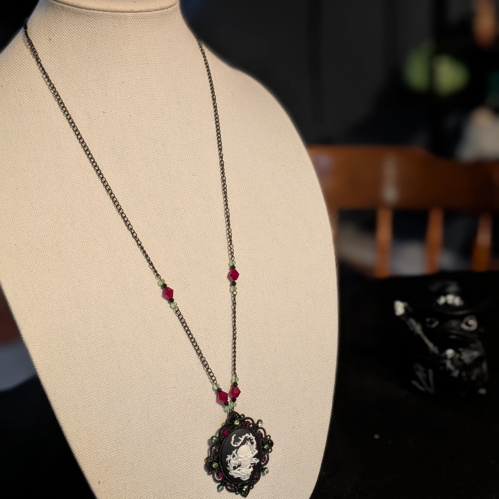 ✨Venombra✨| Skull & Serpent Cameo Necklace with Crimson & Venom-Green Crystals